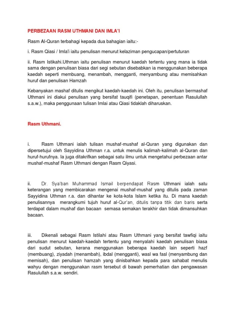 Perbezaan Rasm Uthmani Dan Imla Pdf